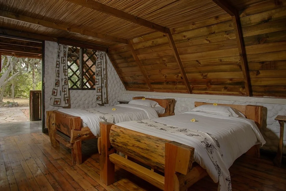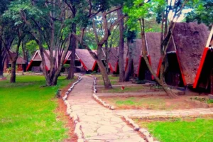There are 64 chalet and 1 VIP cottages all African themed. Each en-suite cottages have a desk, closet, minibar, seating area, dinning area and a balcony with outdoor furniture. Rooms are well fitted and are fully furnished with King size beds, queen size bed or double beds, mosquito nets, hot and cold shower, flushing toilets, electric sockets where guests can charge there electric devices. The lodge staff offer guests with room service.
